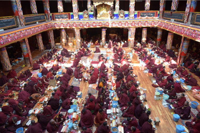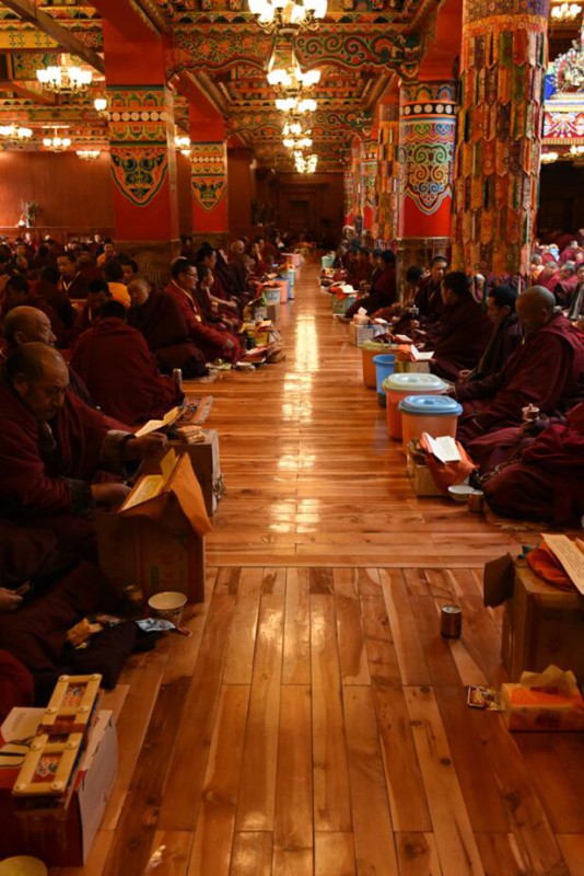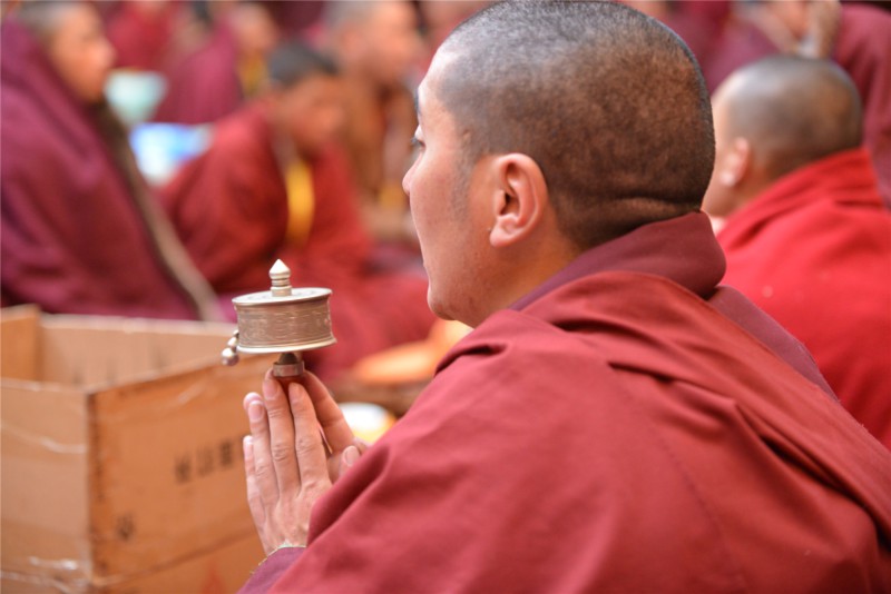 开长寿法会的目的,并不是想要我一个人长寿,而是为了无偏的如来教法广弘各方、长住世间,持教高僧大德长久住世,尤其是为了某位持教大德长久住世。喇荣佛教大学,每年要认真念诵绕那朗巴的《长寿仪轨》至少五万遍。绕那朗巴的这个《密集长寿大修仪轨》,比其他仪轨的加持力更大,修持它,也有让每个人自己修行圆满的必要。